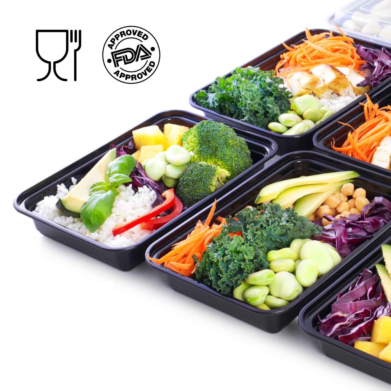 The black container base is non-staining and the transparent lids are raised so presentation of food looks great. These containers help our meal preps look premium quality."