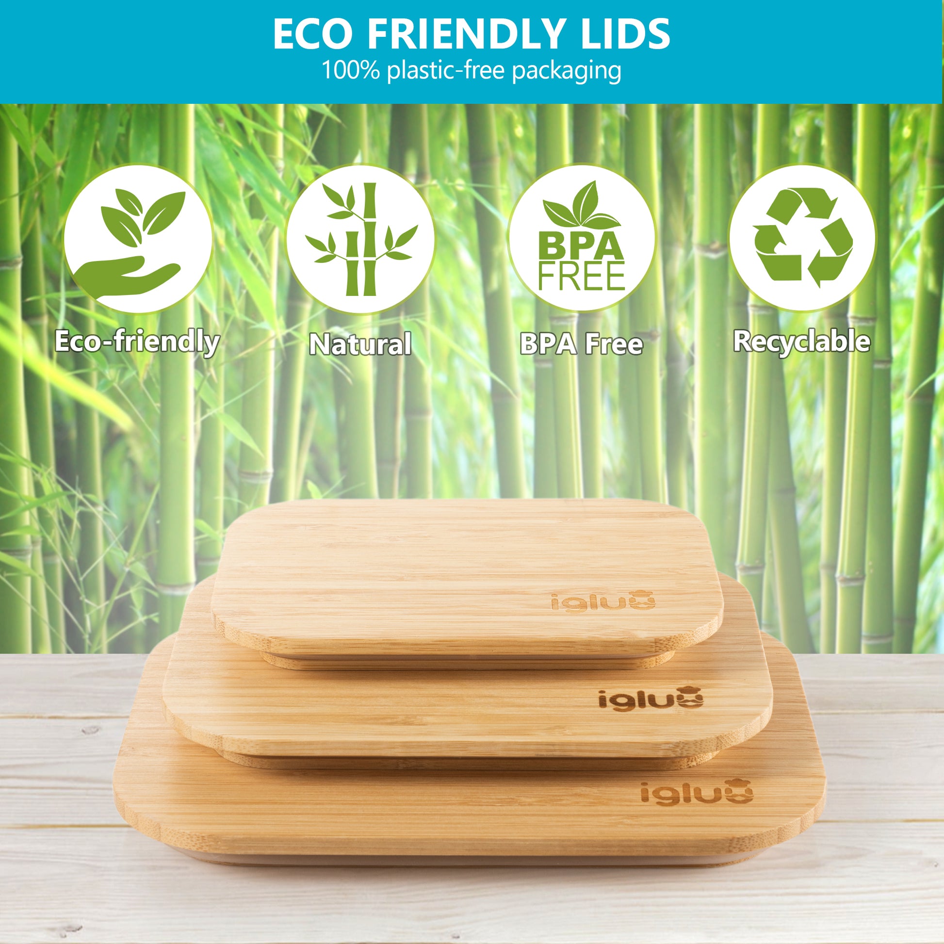 Glass Containers with Bamboo Lids - Assorted sizes - 3 PACK